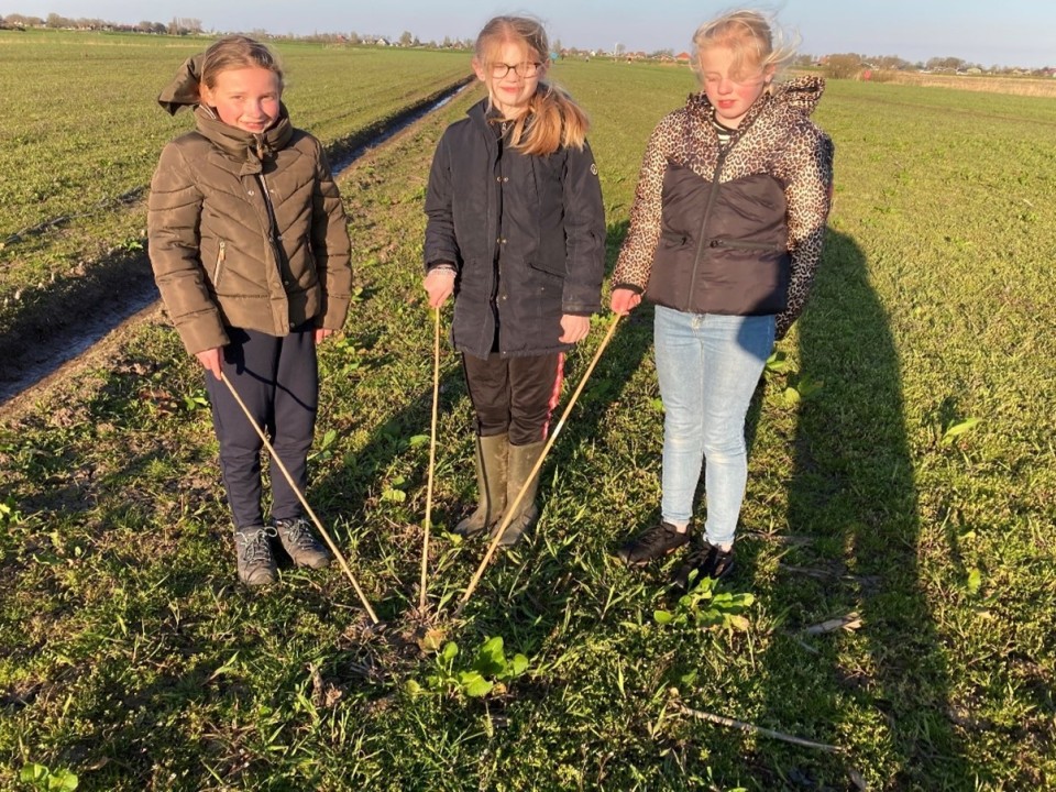 Maandagavond 17 april(Groep 5-6) en woensdagavond 19 april(groep 7-8) 2023 zijn nazorgers van onze Fûgelwacht met groep 5/6 en 7/8 van de basisschool it fjild in geweest. Deze keer waren we in het land van de familie Oerlemans. Hier waren we op een heel groot stuk maisland, waar veel kievitsnesten lagen. Meestal lagen er 4 eieren in het nest. In één nest waren al 2 kievitskuikens en de andere 2 eieren kwamen uit. Bij de gevonden nesten werd een stokje met een groen stukje tape aan het uiteinde gezet. Dan weet de boer of loonwerker, waar de eieren liggen.